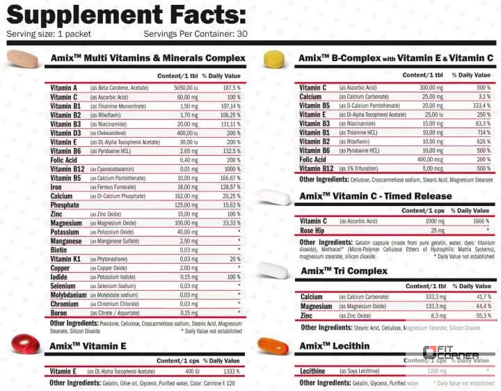 A szuper Vit-Mineral Pack a legtöbb lényeges vitamin és ásványi anyagot tartalmazza, egy haladó sportoló komplex pakkja, amit különlegesen versenyző testépítőknek és erősportolóknak fejlesztett az Amix™. Célod legyen akár az izomnövekedés, akár az állóképesség növelése mindenképp szüksége van szervezetednek egy nagy dózisú minőségi alapanyagokból összeállított ásványianyag és vitamin komplexre. Ha nem tudsz hízni, tömeget növelni kellőképpen akkor is erre van szükséged, hogy elmozduljon szervezeted a megszokott állapotáról.
