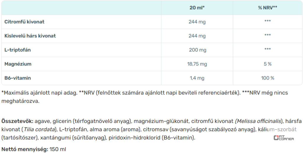 A még jobb eredmény érdekében a termék L-triptofánt, B6-vitamint és magnéziumot is tartalmaz.