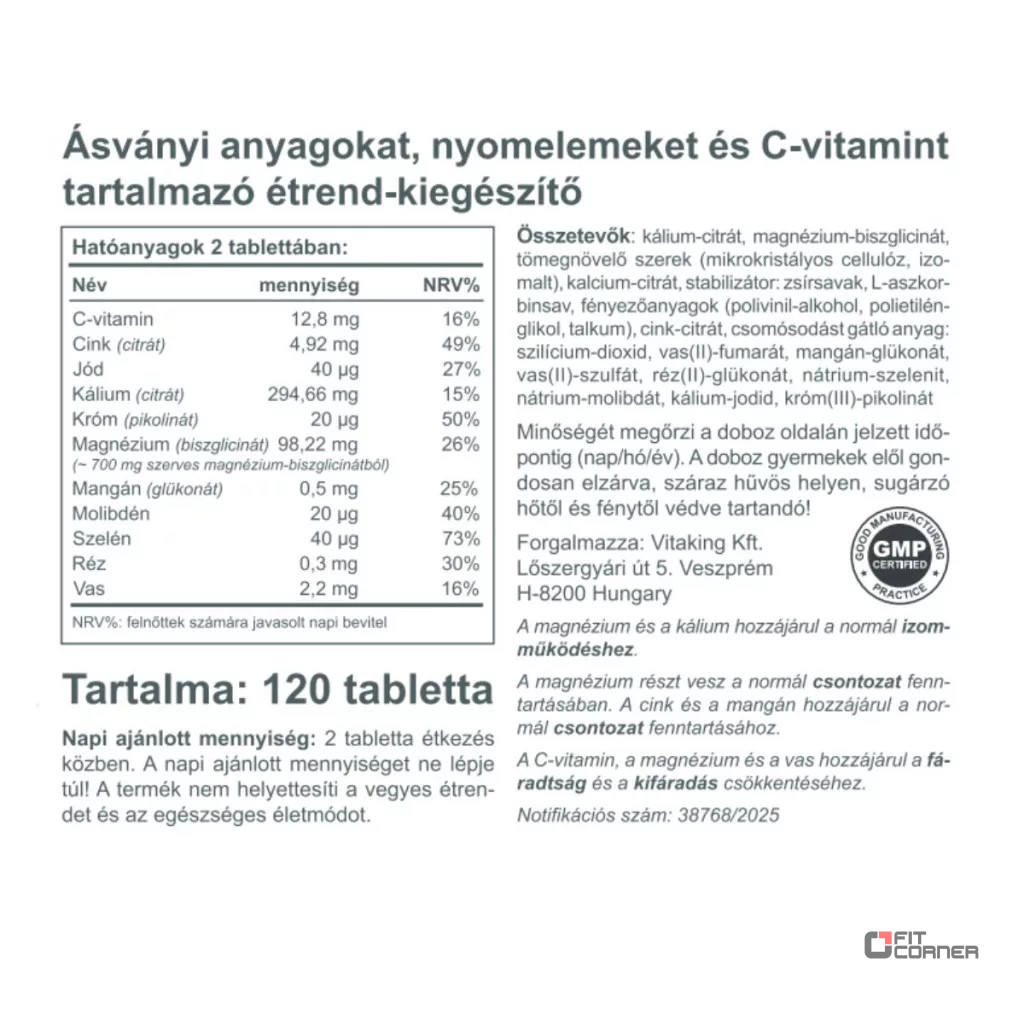 Magnézium, kálium, cink, vas és több nyomelem egyetlen készítményben.